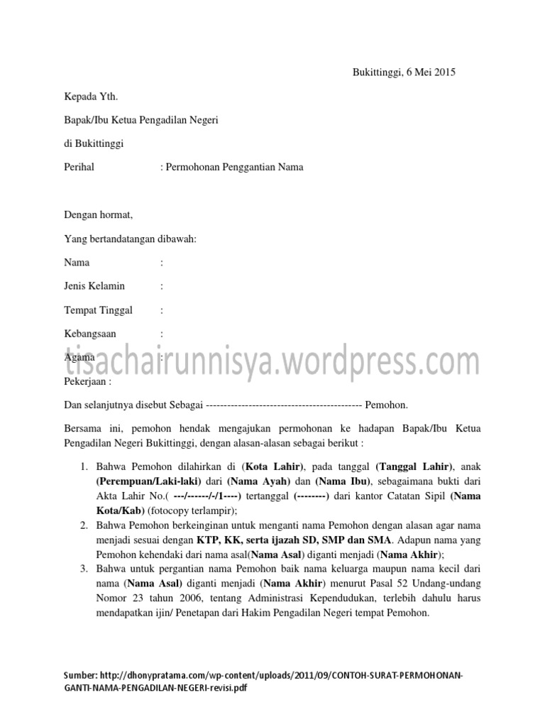 Surat Permohonan Pergantian Nama Pdf